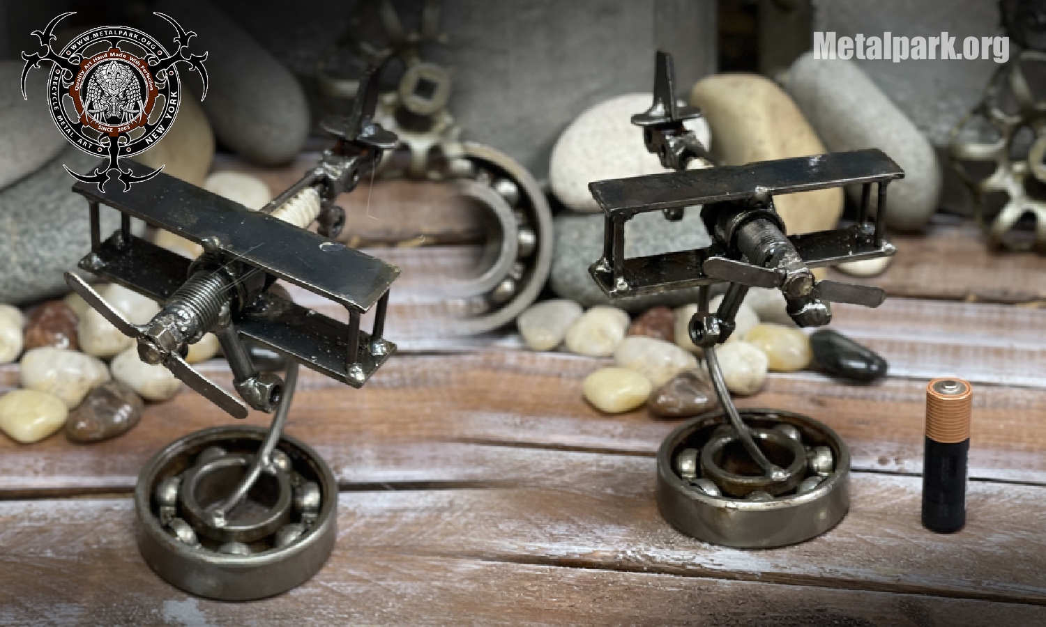 This unique biplane is handcrafted entirely from recycled motorcycle parts and scrap metal. Every piece - from the propeller to the landing gear - is carefully selected and welded by hand, turning forgotten metal into a detailed, one-of-a-kind sculpture.