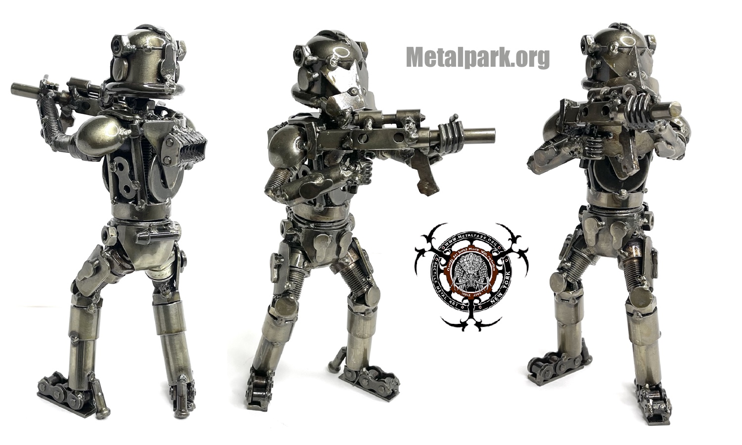 This is a one-of-a-kind creation. While future versions may follow the same form, the exact metal pieces will always vary, making each sculpture uniquely different in detail.
