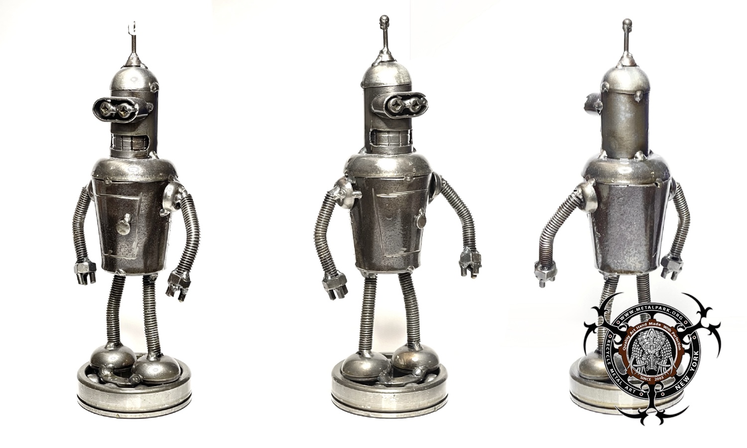 Our unique creation is meticulously crafted from a combination of motorcycle parts, car parts, and scrap metal, making each piece truly one-of-a-kind. Using the ARC welding technique, our skilled artisans assemble this artwork piece by piece, showcasing their dedication to precision and quality. The finished product is polished with a wire brush, enhancing its distinctive appearance and texture. To ensure its longevity, each piece is carefully coated with lacquer, providing protection against rusting and preserving its original finish for years to come.